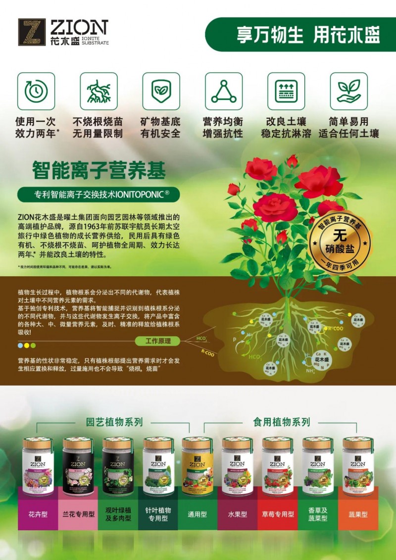 根据全球园艺产业发展报告显示,欧美地区园艺产业市场份额约占全球市场的三分之二,中国市场与之相比仍有较大差距。ZION曜土集团以ZION花木盛品牌进入中国园艺市场,其智能省心、营养全面均衡、不含硝酸盐、不烧根苗、使用1次效力2年、改善土壤等特点,简化了园艺生活中繁杂的种植、养护过程,让更多人爱上园艺,花木盛将持续为中国园艺产业的发展持续努力贡献。
