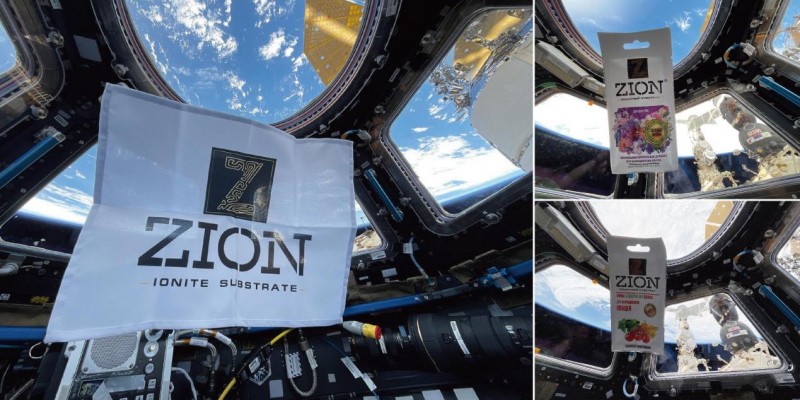 ▲ZION品牌旗帜及营养基产品在国际空间站翱翔